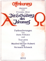 Die Kassette "Die Enthüllung des Johannes" besteht aus der Einheit von Farbradierungen auf Bütten, eingelegt in einen Handdruck der Bibeltexte im Hochdruckverfahren in der Übersetzung von Fridolin Stier und der Texturen von Prof. Dr. M. Becker-Huberti und Superintendent Pfarrer H. Schenck.